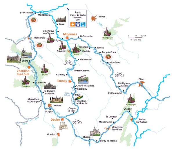 מרכז צרפת – לב ליבה של צרפת. האזור מתאפיין בעיקר בשל השלווה, הכרמים והיינות, עיירות, טירות וכנסיות ובעיקר כרמים. השילוב של תעלת בורגונדי, נהר היון וניברנה מאפשרים שייט באזורים נרחבים.
